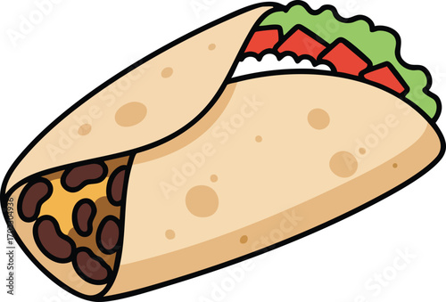 Vector taco icon with curved shell and filling details, black silhouette Mexican food illustration