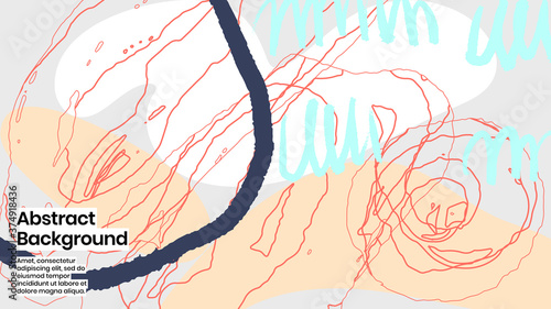 Abstract background illustration. Colorful lines, scribble and paint strokes. Decorative chaos wallpaper, backdrop. Hand drawn texture, decor elements and shapes. Eps10 vector.