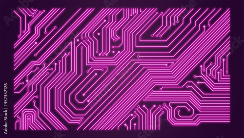 Futuristic Microchip Circuit Board with Purple and Pink Neon Technology Design Background