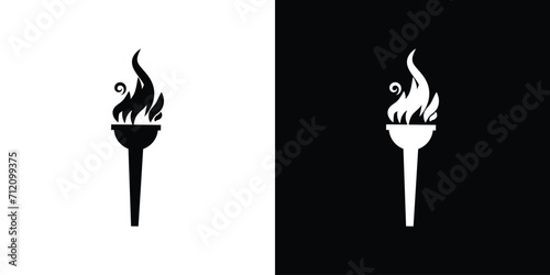 Torch fire logo vector icon, Olympic flaming torch logo, sport fire sign,
