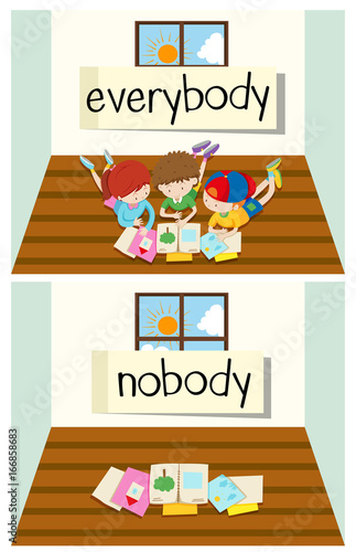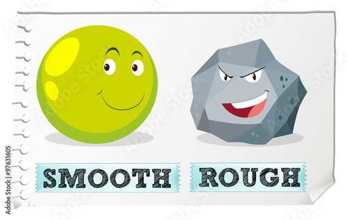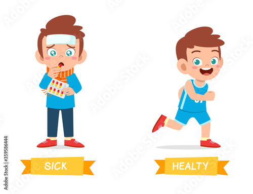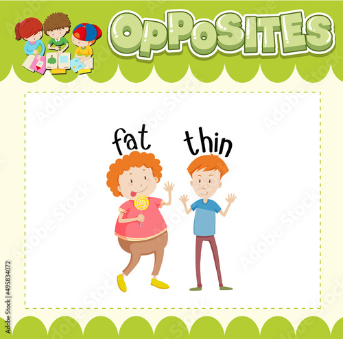 Opposite adjective antonym English words fat thin illustration for kids explanation flashcard with text label