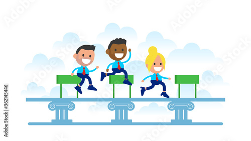Business team overcomes obstacles. Business concept of competitions and awards.