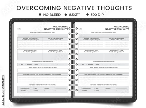 Challenging Negative Thoughts, worksheet overcoming negative thoughts, planner or logbook journal printable template