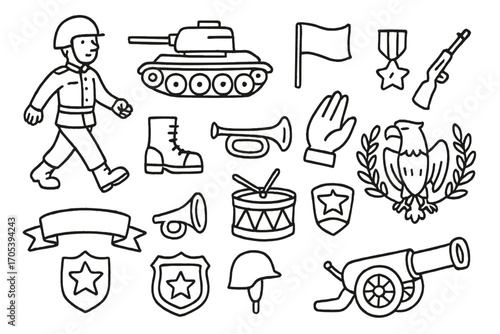 Marching soldiers in uniform with rifles moving in formation for military parade or ceremony representation isolated on white background