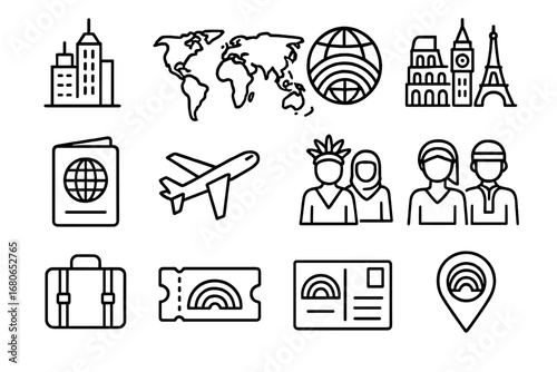 Nonbinary community icon set. Gender identity outline icons for meetup group, workshop, picnic, and pride parade. LGBTQIA+ inclusion and support symbol collection. Vector.