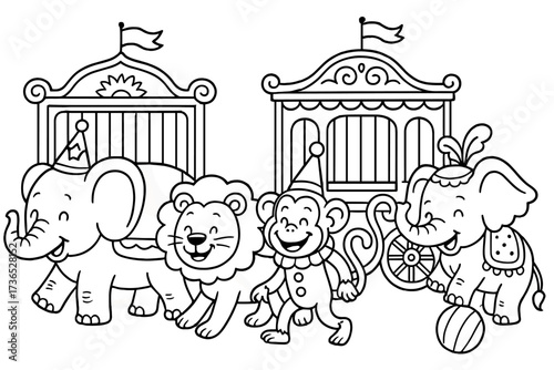 Carnival Icon Set. Outline icon set of carnival and parade events: parade float, clown mask, confetti, carnival mask, balloon,