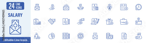 Salary line icon set. Contains icons as salary, income, pension fund, finance and more. Vector illustration.