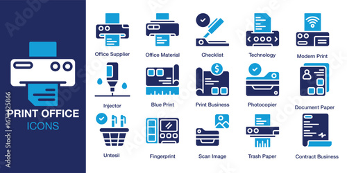 Printer icon set. Printout symbol. Printing machine icon template design.