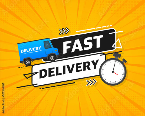 Fast delivery service badge. Fast time delivery order with stopwatch on white background. Vector illustration