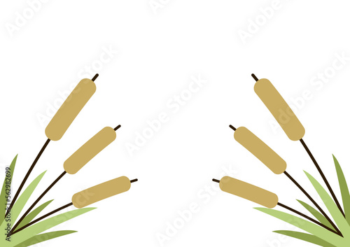 Reed, Cattail, Cane. Flat Vector Icon illustration. Cartoon grass, reeds and canes isolated on white background.