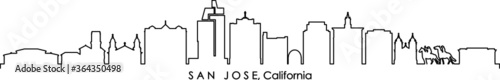 Vector illustration of San Jose, monochrome card with linear design famous californian city scape, american urban line art concept with decorative lettering for black text san jose on white background