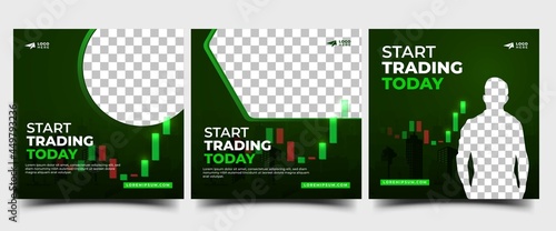 Trading social media post template design collection. Editable modern banner with candle stick illustration.