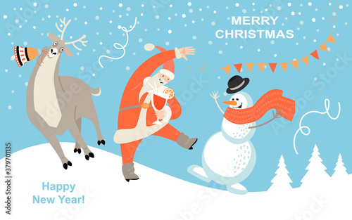 merry christmas xmas happy new year festive greeting card template background in navy blue red and white colors, vector illustration graphic
