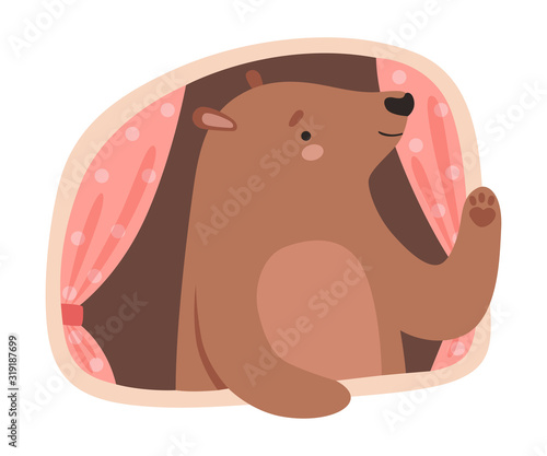 Hare Looked Out From Tree Hollow and Waving Paw Vector Illustration