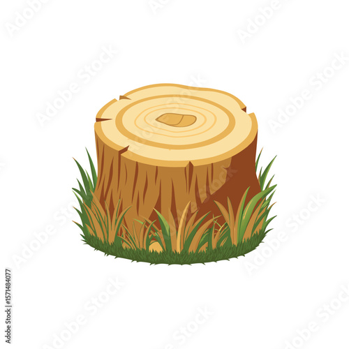 Cute cartoon hollow tree with soft wooden texture, round hole surrounded by small grass, pastel background,