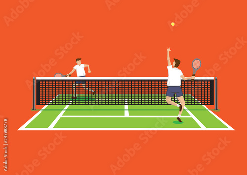Two Tennis Players Having a Game in Tennis Court Cartoon Vector Illustration