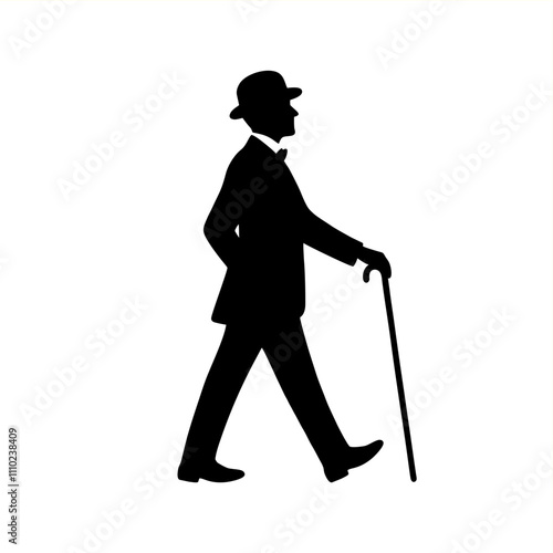 "Graphic black silhouettes of three men's profiles in vintage attire, lined up left to right. Each man has distinct headwear and grooming: a top hat and curled mustache, a bowler hat with a full beard
