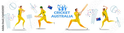 illustration of Player batsman and bowler of Team Australia playing cricket championship sports