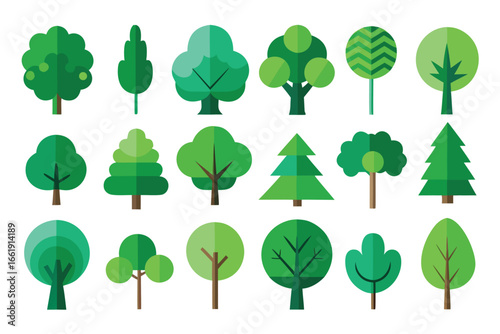 Forest conservation and ecology green vector icon set. Symbols for saving trees, reforestation, and protecting nature.