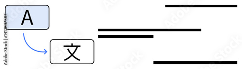 Letter A, a character from another alphabet, and a globe with text lines symbolizing language translation, global communication, and localization. Ideal for technology, education, business