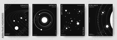 Space, planets and galaxy. Set of futuristic space posters featuring planets, cosmos, and abstract geometric shapes. Perfect for astronomy enthusiasts, science fiction themes, and modern wall art
