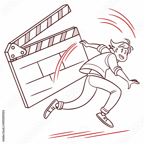 Minimalistic line drawing of a classic film clapperboard used in movie productions