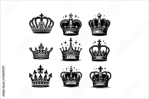 Silhouette set of crown on white background