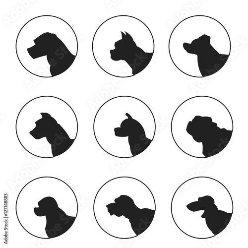 Set Pit bull terrier logo. Dod face with collar. Set labels vect