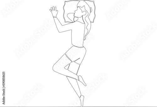 man lies on his side props his head up with his hand - one line drawing vector. concept procrastination, laziness, observation, rest