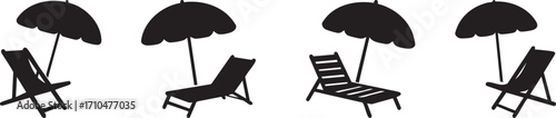 People relaxing in deck chairs silhouettes isolated on white background, Vector