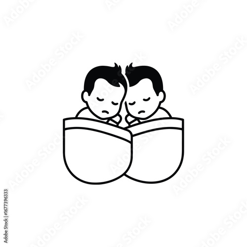 Illustration of two rabbits, one in outline and the other filled in black, both in a resting position editable vector eps/eps