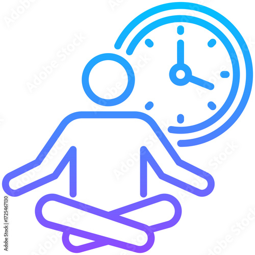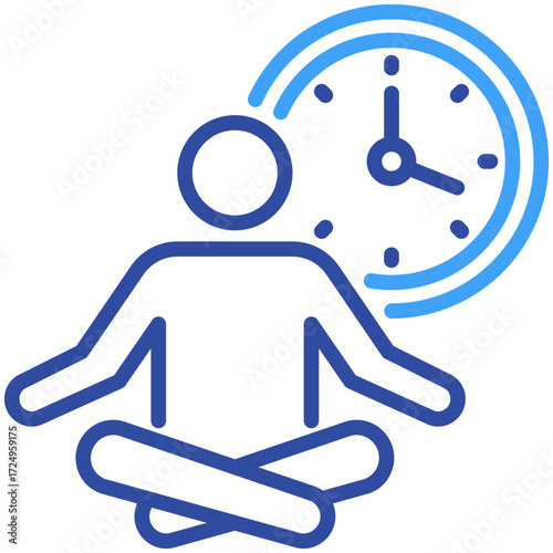 Concept of procrastination and proper time management. Young woman sitting in lotus position and meditates. Time for work and rest concept. Flat vector illustration in cartoon style