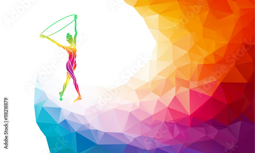 Colorful gymnastics silhouette. This image shows a vibrant and abstract design of a gymnast in a dynamic leap pose, showcasing flexibility and athleticism. Vector clipart illustration design.