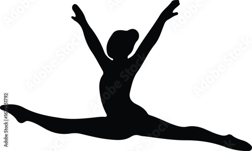 vector; gymnastics; split; leap; woman; gymnast; jump; black; silhouette; isolated; girl; exercise; sporty; feet; graceful; stretching; flexibility; athlete; female; sport; competition; gym; gymnastic