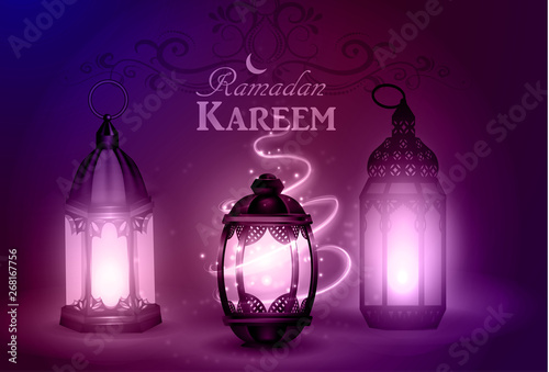 Mosque silhouette in sunset sky and abstract light for ramadan of Islam