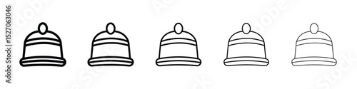 Winter Knitwear Icons. Outline icon set of winter knitwear: thick scarf, pom-pom hat, patterned sweater,