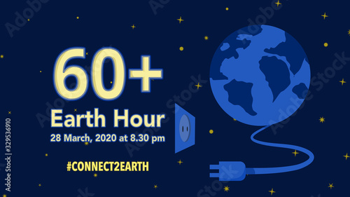 60+ Earth hour on March 28, 2020 concept :  Switch off the light for 1 hour. Voice for the planet concept. turning off the light of the world by unplugging. Vector illustration, flat design