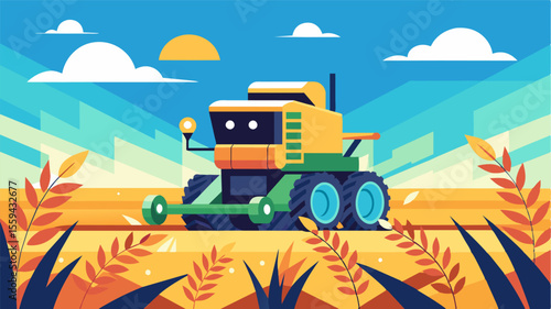A compact robotic harvester designed specifically for smallscale farms providing an affordable solution to laborintensive harvesting processes.. Vector illustration