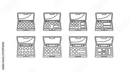 A collection of makeup artist tools and accessories including palettes brushes and glam bag design |eps vectors set silhouette