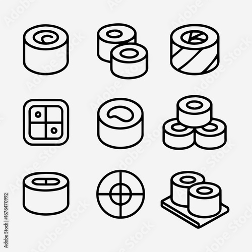 Bold black and white vector illustration of a sushi roll, ideal for food menus, restaurant branding, and culinary design.