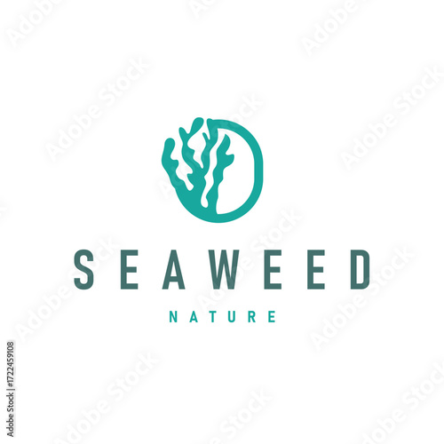 Seaweed Logo, Underwater Plant Vector, Simple Leaf Design, Illustration Template Symbol Icon