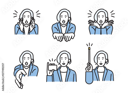 ベクターイラスト素材:指で示す女性人物セット、ビジネス