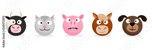 Set Emotions. Cute animals cartoon illustrator. Set of flat style vector avatars of animals.