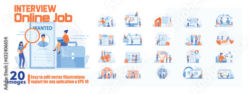 Interview online job concept illustration, collection of male and female business people scenes in the interview online job scene. mega set flat vector modern illustration