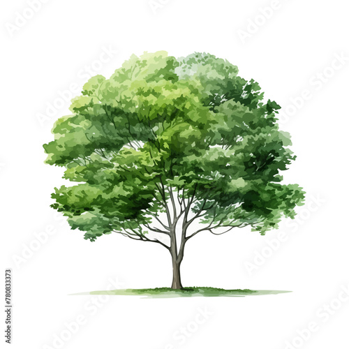 Vector watercolor blooming flower tree or forest side view isolated on white background for landscape and architecture drawing,elements for environment or and garden,green tree for garden section