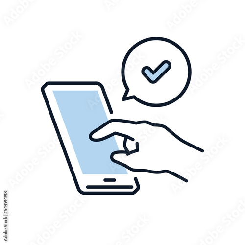 Online subscription services on smartphone screen. Finger press subscribe button to access entertainment media, education, treatment and food supply content. Mobile app promo banner eps illustration