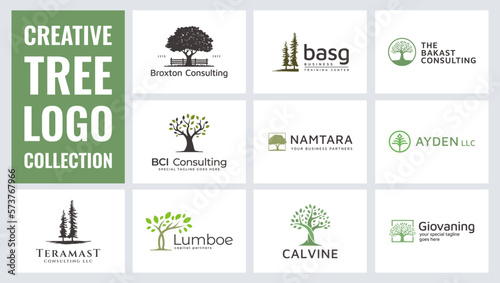 oak tree logo design bundle, nature tree icon set vintage forest vector illustration