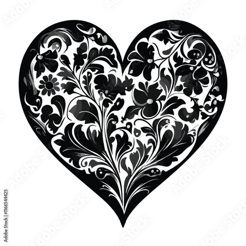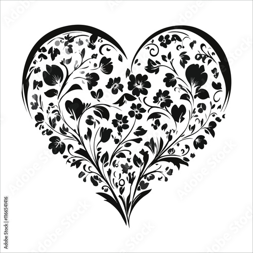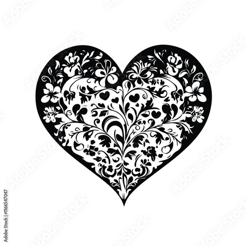 heart with a heart valentine Day vector ,floral, flower, vector, pattern, heart, design, ornament, leaf, decoration, illustration, swirl, element, art, vintage, scroll, love, plant, black, tattoo, orn