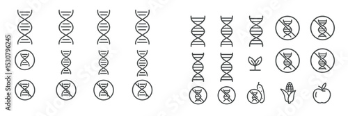 GMO. Genetically modified organism. Line icons set. Vector signs for web graphics.