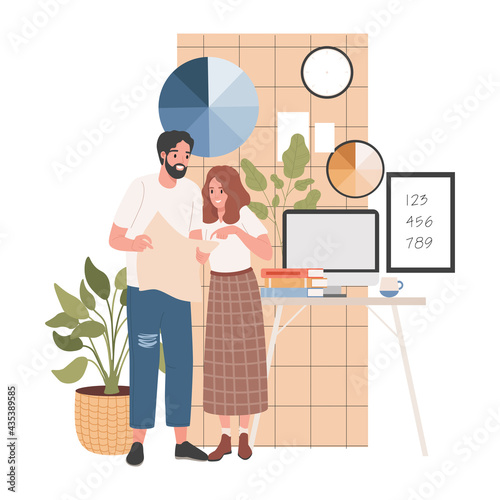 Interior designers or decorators planning design of interior choosing wall color set vector illustration